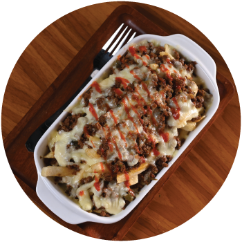 Crispy fries layered with slow-cooked Mexican beef chilli and melted cheese blend.