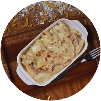 Penne tossed in a silky Alfredo sauce, enriched with Parmesan and butter, and finished with…
