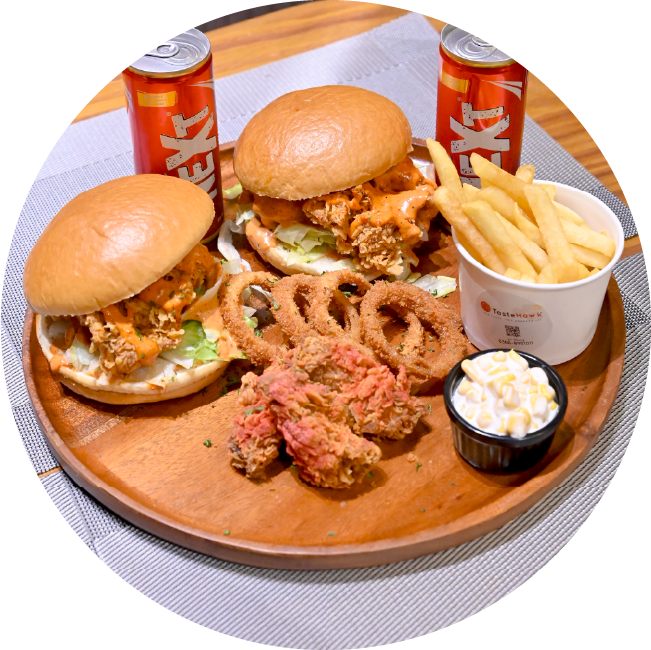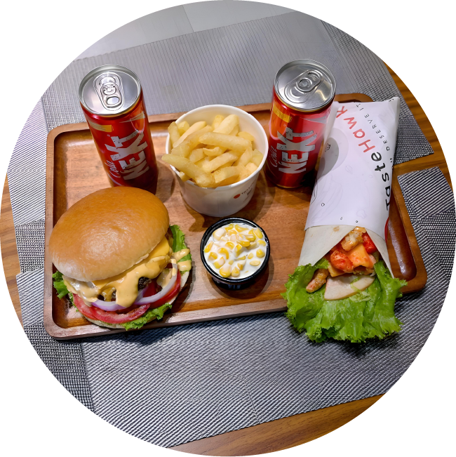 1 Classis Beef Burger, 1 Chicken Crispy Wings, 1 Fries, 2 Cola…