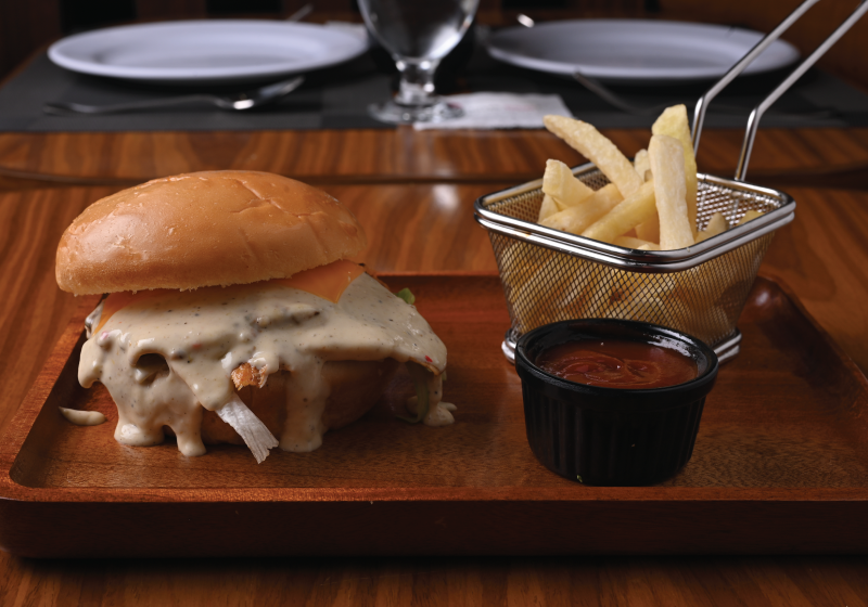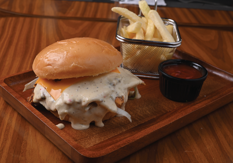Juicy grilled chicken, melted cheese, and creamy perfection in every bite. serve with dip & fries.