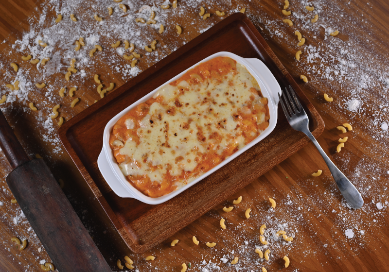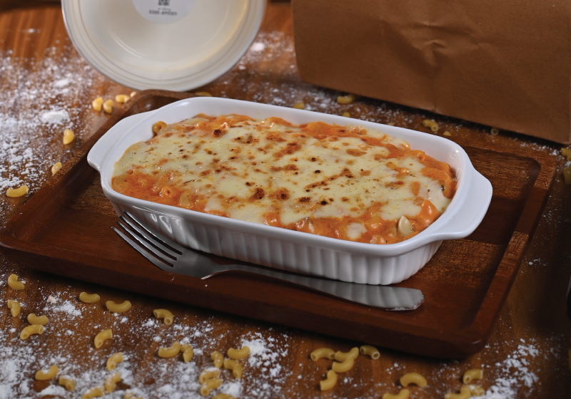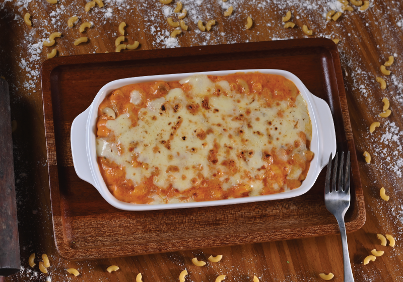 Pasta tossed in a luscious, spicy dynamite sauce with tender chicken, garnished with fresh herbs and chilli flakes—explosively delicious in every bite.